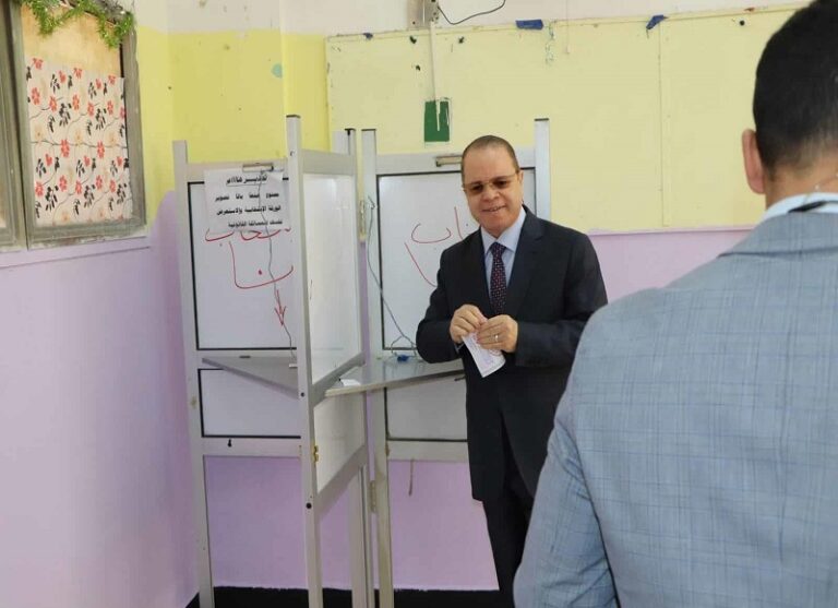 النائب العام السابق يدلى بصوته في الانتخابات الرئاسية بالتجمع الخامس (صور)