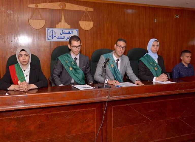 وقدم الطلاب محاكمة جنائية مكتملة لإحدى جرائم القتل، حيث لعب طلاب الكلية كافة الأدوار المتدرجة لتقمص الشخصيات المختلفة، فقام بعضهم بدور القضاة، والبعض الآخر بدور النيابة العامة، وآخرون بدور هيئة الدفاع عن المتهم، كما قام البعض بأدوار المتهم،والشرطة، والحاجب، وآخر بدور كاتب الجلسة، وذلك بهدف تقديم نموذج تطبيقي للمحاكم الحقيقية، ومحاولة ربط الدراسة الأكاديمية بالواقع التطبيقى والحياة العملية.