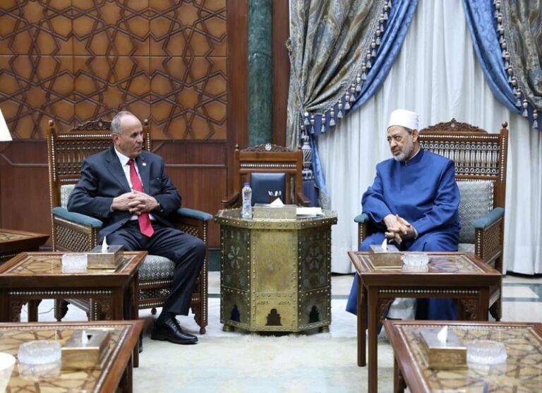 استقبل فضيلة الإمام الأكبر الدكتور أحمد الطيب، شيخ الأزهر الشريف، اليوم الخميس بمشيخة الأزهر، المستشار عبد الرازق شعيب، رئيس هيئة قضايا الدولة؛ للتهنئة بمناسبة ذكرى المولد النبوي الشريف.