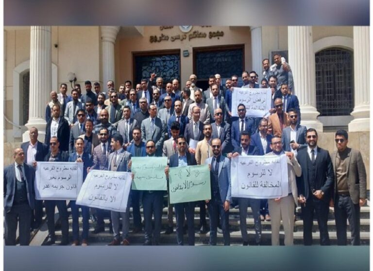 اعتراضًا على زيادة الرسوم القضائية بالمخالفة للدستور والقانون، وذلك تحت إشراف مجالس النقابات الفرعية.