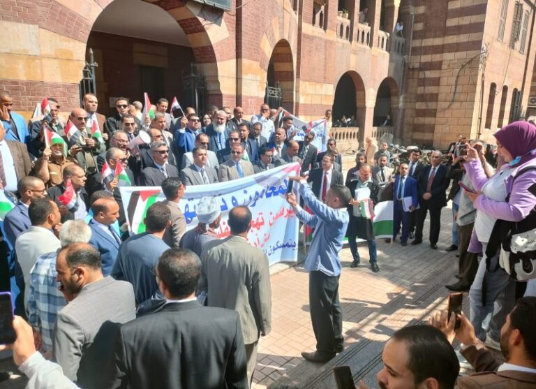 وكان بيان صادر عن مجلسي نقابتي شمال وجنوب أسيوط قد دعا إلي وقفة تضامنية داخل مجمع محاكم أسيوط اليوم تنديدا بالعدوان الصهيوني الغاشم علي الشعب الفلسطيني الباسل ودعما لصموده وتأييدا للموقف الوطني المصري.
