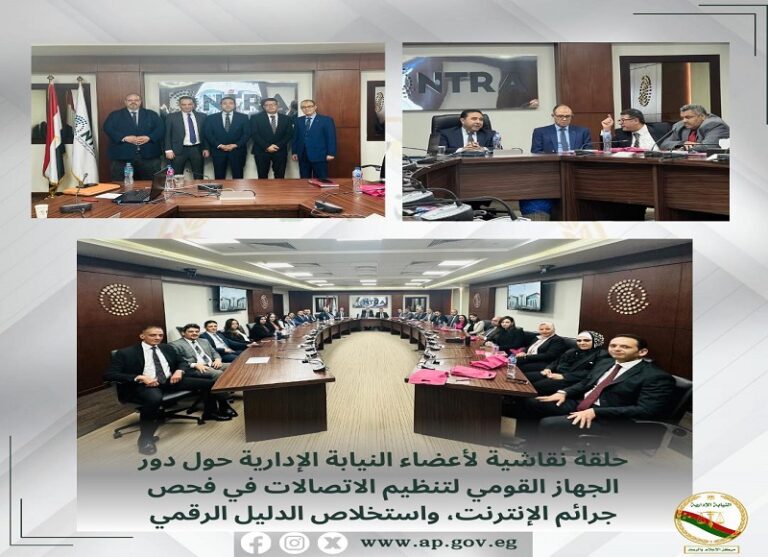 تنفيذاً لتوجيهات معالي المستشار حافظ عباس رئيس هيئة النيابة الإدارية، عَقَدَت اليوم الخميس الموافق ٢ / ٥ / ٢٠٢٤، وحدة قضايا الجرائم الرقمية برئاسة المستشار تامر الشحات، وبالتعاون مع الجهاز القومي لتنظيم الاتصالات، حلقة نقاشية تحت عنوان “دور الجهاز القومي لتنظيم الاتصالات في فحص جرائم الإنترنت، واستخلاص الدليل الرقمي” وذلك بمقر الجهاز بالقرية الذكية.