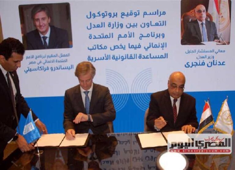 وقع اليوم المستشار عدنان فنجري وزير العدل، والممثل المقيم لبرنامج الأمم المتحدة الانمائي أليساندرو فراكاسيتي،
