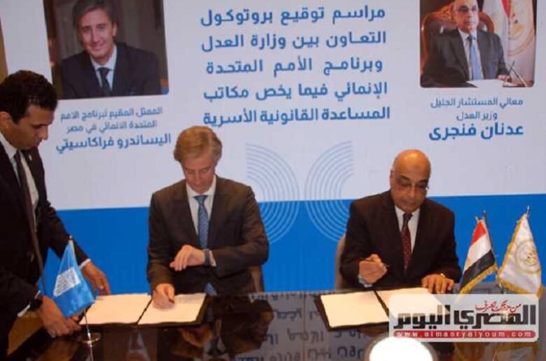 وزير العدل وممثل الأمم المتحدة يوقعان مذكرة تعاون لتقديم المساعدة القانونية لمكاتب الأسرة
